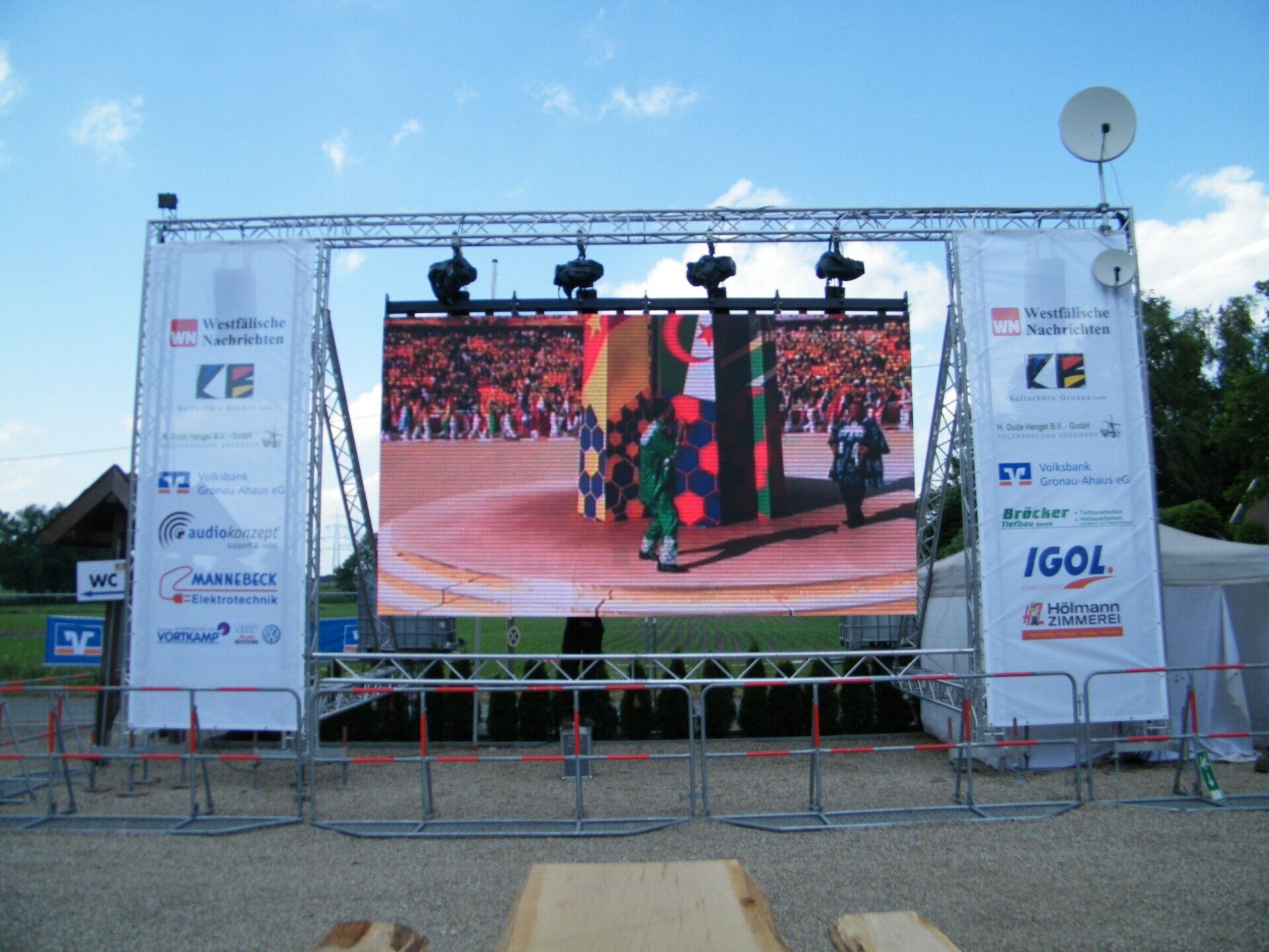 Hier sehen Sie einen kleinen Überblick über unsere Bühnen. Egal ob Mega-Stage oder eine Gala-Indoor-Bühne - egal ob Layherkonstruktion oder Sonderbauten. Ob ein, zehn oder 100 Künstler auf der Bühne, wir haben für jedes Event die passenden Bretter, die die Welt bedeuten. Durch die langjährige Partnerschaft mit der Firma "subsonic showtechnik" können wir somit "fast" jede Konstruktion realisieren.